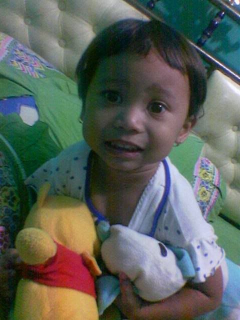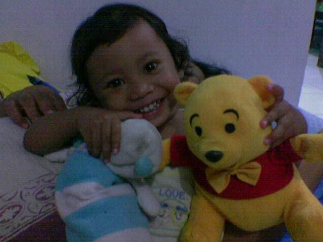 Wahhhh dah lama pulang gak pernah terlalu perhatikan keysha, kemarin iseng-iseng buka HP eyang kakungnya keysha, baru sadar kalau keysha sekarang memang dah besar. Sekarang dah 2 tahun 3 bulan, dah bisa make sepatu sendiri, make baju sendiri, dan yang paling njengkelin kalau lagi dilarang dan dibilangin "Anak kecil gak boleh makan permen!!!" permen atau apalah, dia jawabnya "Mbak keysha dah besar!!!!!".